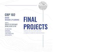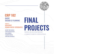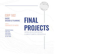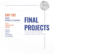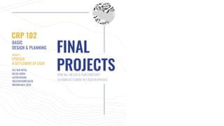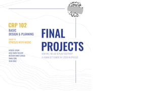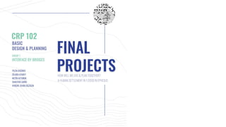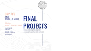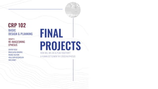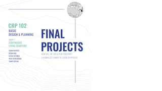- Each group's final project themes and members. Themes include continuous living quarters, alternative growth systems, and reimagining Ephesus.