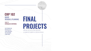 This document outlines the final projects of 12 student groups for a studio course on the ancient city of Ephesus. It includes: