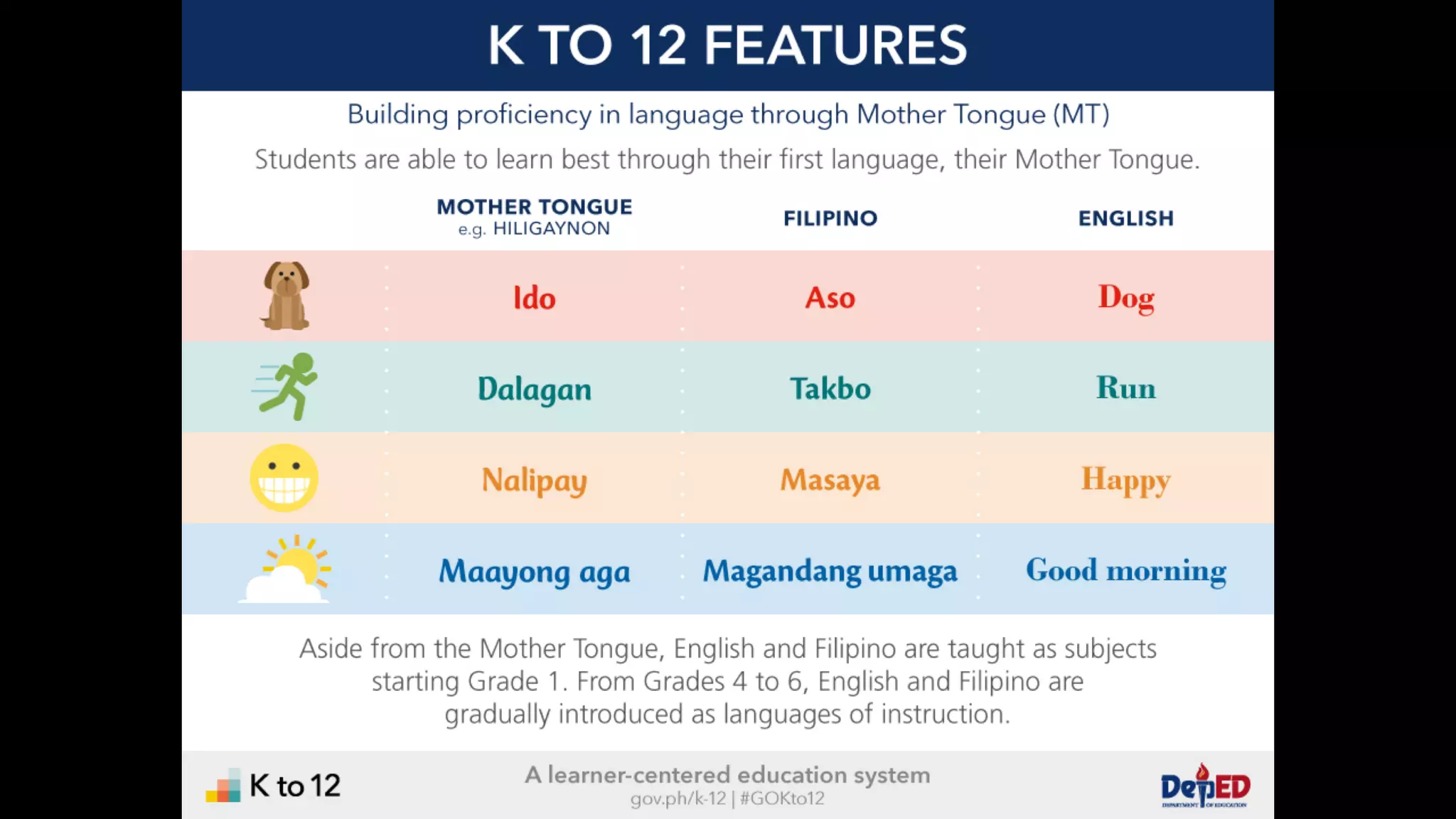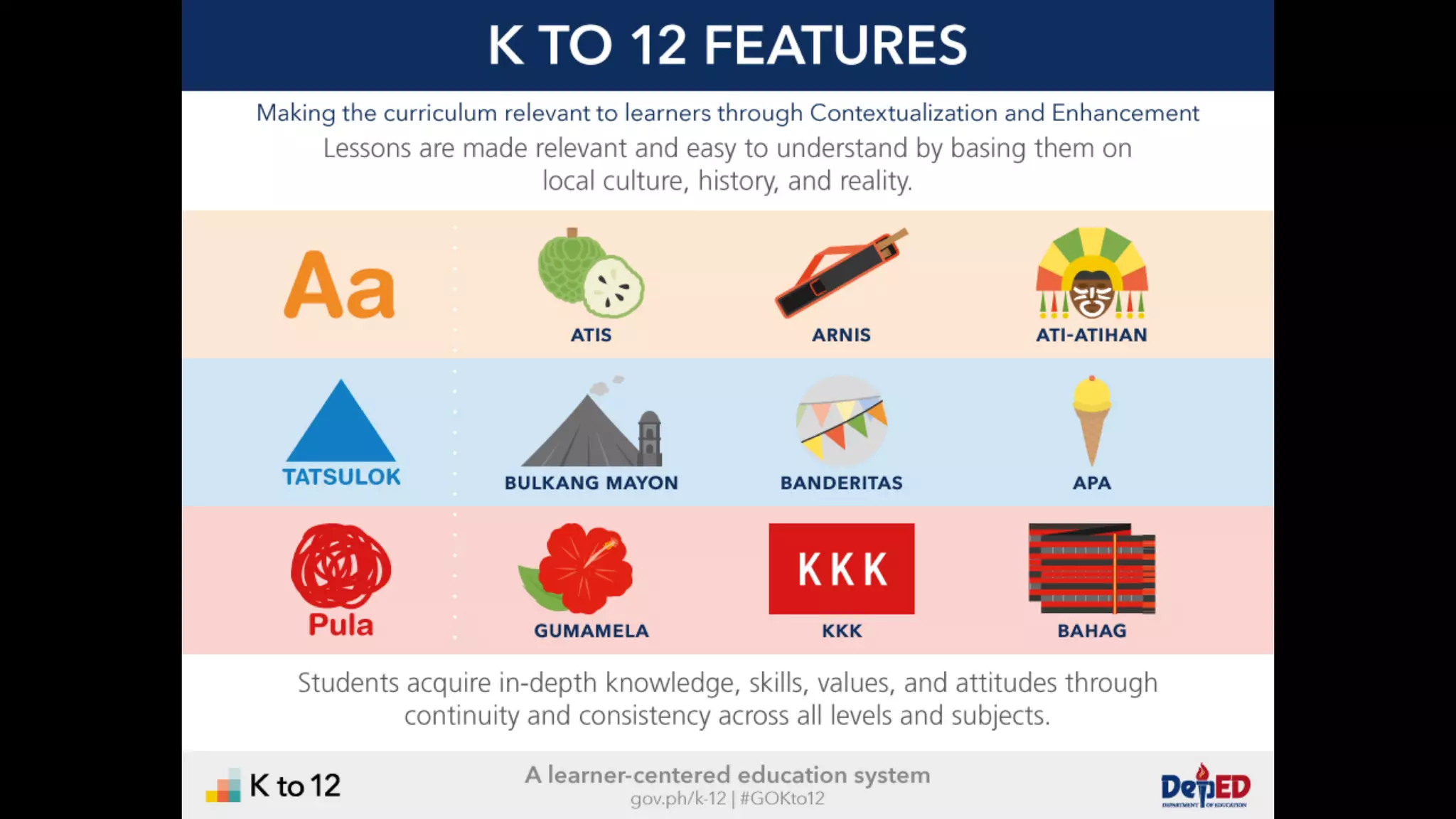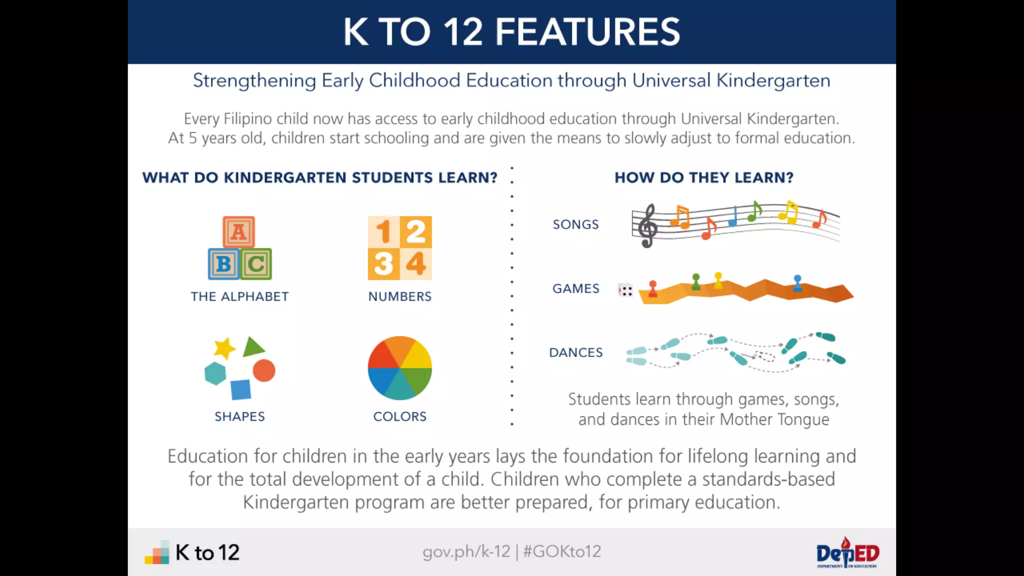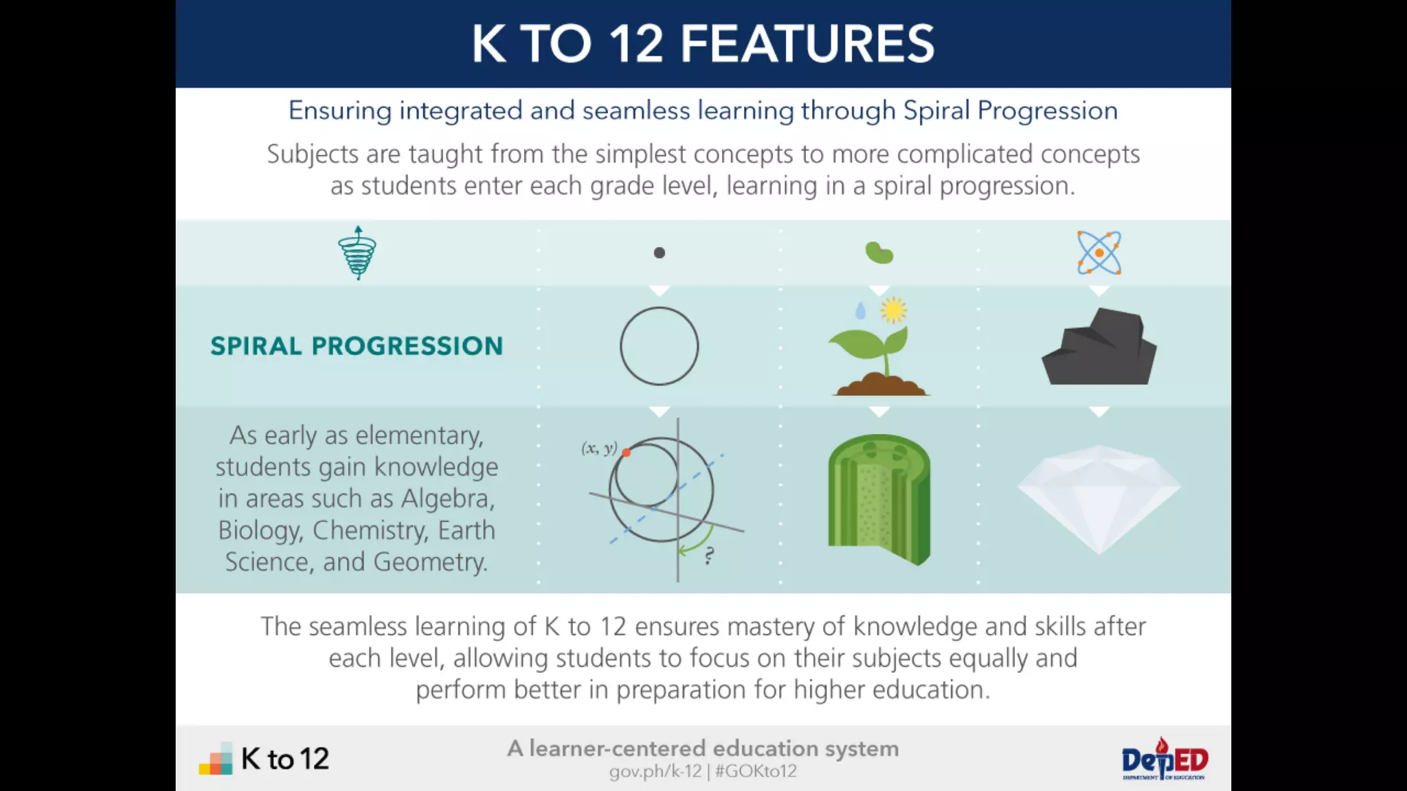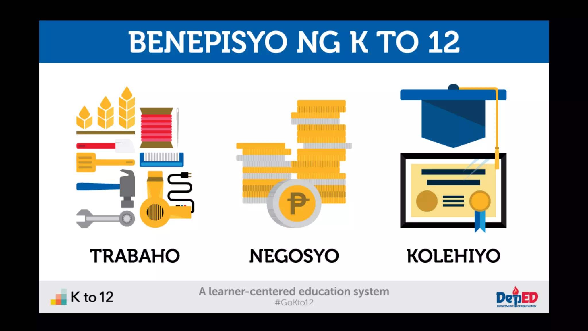 The document discusses the K to 12 education reform program in the Philippines, focusing on improving access to quality education and promoting lifelong learning for all. It includes statistics on enrollment, labor force data, literacy rates, and skills needed in the job market, along with budget allocations for education. The implications of these reforms aim to equip learners with essential skills and prepare them for future educational and job opportunities.