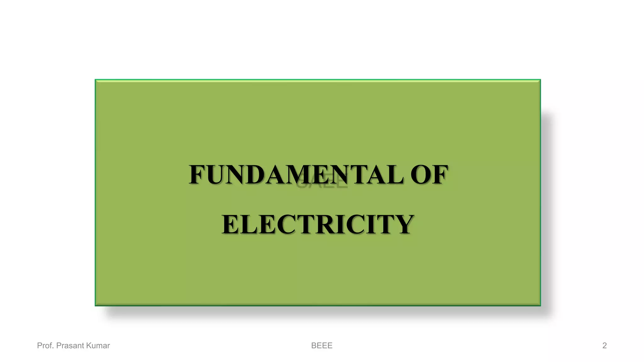 This document provides a comprehensive introduction to the fundamentals of electricity, focusing on atomic structure, electric current, types of electric sources, and electrical components such as resistors, capacitors, and their properties. Key concepts include the behavior of electrons, classification of materials (conductors, insulators, semiconductors), and the differences between alternating current (AC) and direct current (DC). It also covers practical applications and characteristics of electrical components like resistivity and capacitance.