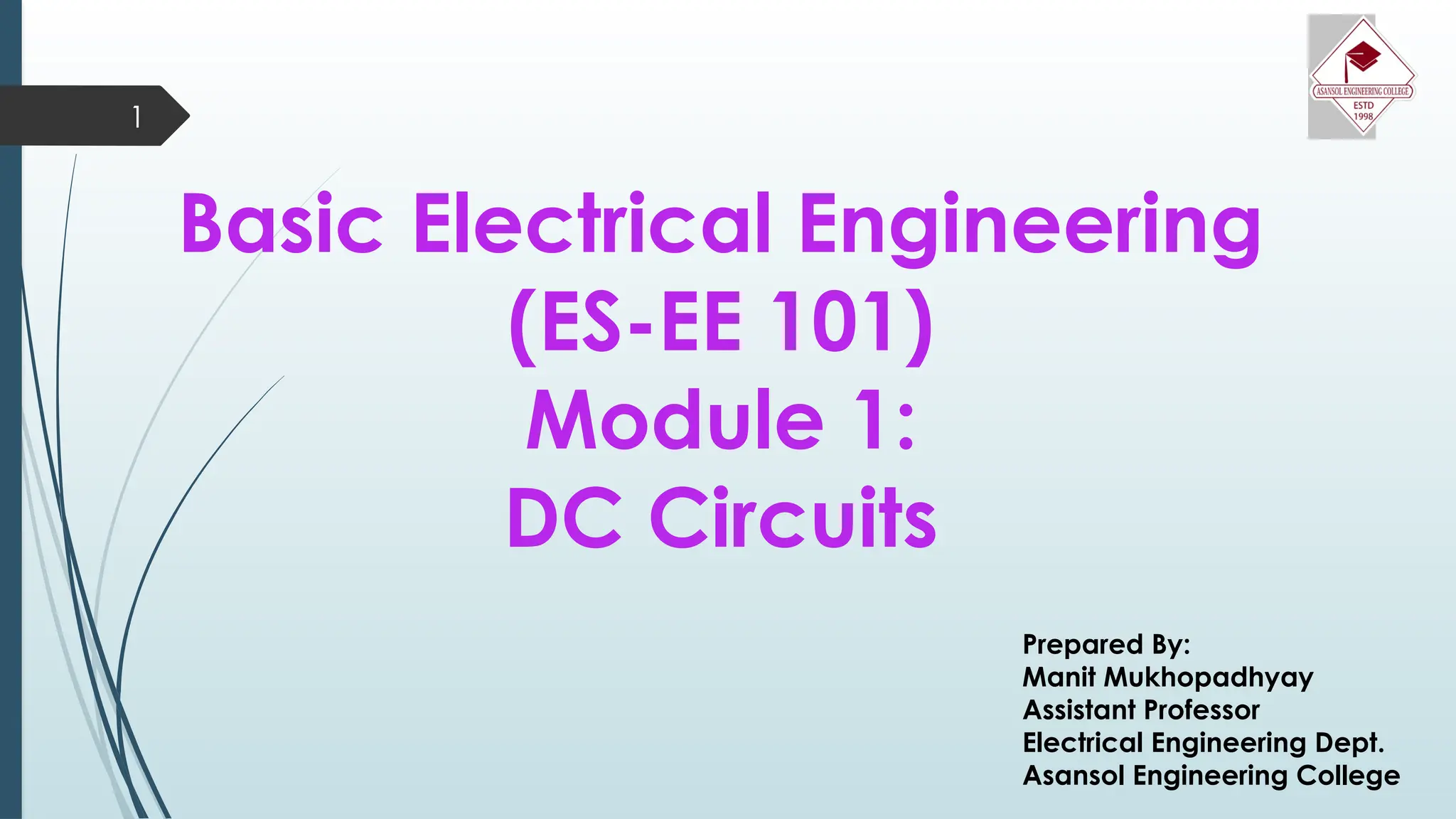 Basic ElectricalEngineering (ES-EE 101) Department of Electrical Engineering