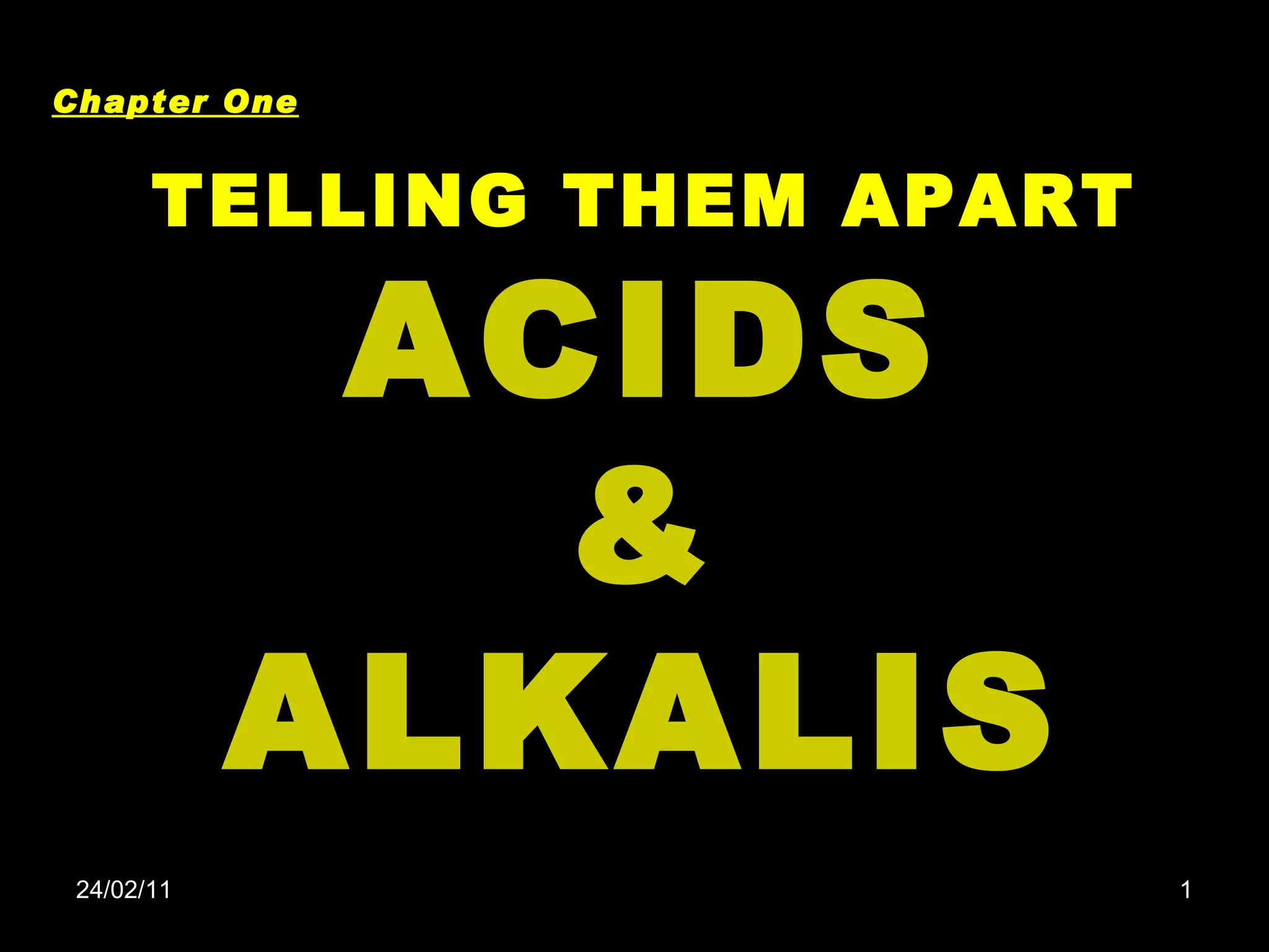 The document discusses the properties and classifications of acids, including their sour taste, pH levels, and reactions with other substances. It distinguishes strong acids, which fully dissociate in water, from weak acids, which partially dissociate. Additionally, it introduces indicators as a safe method for testing acidity or basicity, emphasizing the importance of handling acids safely.