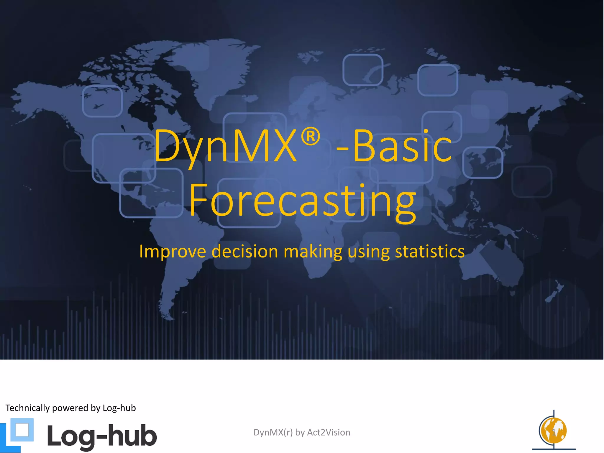 This document discusses basic forecasting using DynMX Supply Chain Apps. It provides an overview of what basic forecasting is, what is needed to do a basic forecast, and how to perform and interpret the analysis. Basic forecasting predicts future demand values based on historical data using time series algorithms and calculates prediction accuracy. It requires Excel, the DynMX Supply Chain Add-In downloaded from their website, and historical data points to forecast future periods. The analysis provides a forecasted values table, time series graph, box plots of grouped data, and prediction accuracy level.