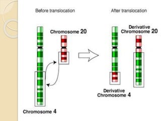 This document provides an overview of genetics and defines key genetic concepts. It discusses that genetics is the study of heredity and the variation of traits among organisms. It describes that DNA contains the genetic code and is made up of nucleotides with four bases that pair up in a double helix structure. Genes are sections of DNA that code for proteins. Chromosomes package DNA and humans have 23 chromosome pairs. Mutations can occur that change DNA sequences and cause genetic disorders. The document outlines different types of mutations and explains genetic testing techniques like karyotyping to analyze chromosomes for abnormalities.