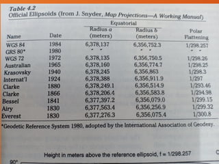 • The WGS(world Geodetic Systems) 72 and WGS 84 ellipsoids,