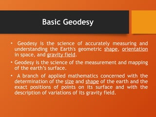 • Geodesyis the science of accurately measuring and