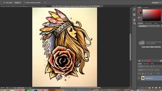 This document provides instructions for using Photoshop to add a tattoo and makeup effects to an image of a girl. The steps include opening images in Photoshop, using tools like the move tool and magic wand to add a tattoo from another image onto the girl's arm, adjusting the tattoo size and shape using transform and liquify tools, and adding makeup effects like red lips and green-toned eyes by filling selections and adjusting levels and blending modes. Following all the steps results in a final edited image of the girl with an added tattoo and makeup effects.
