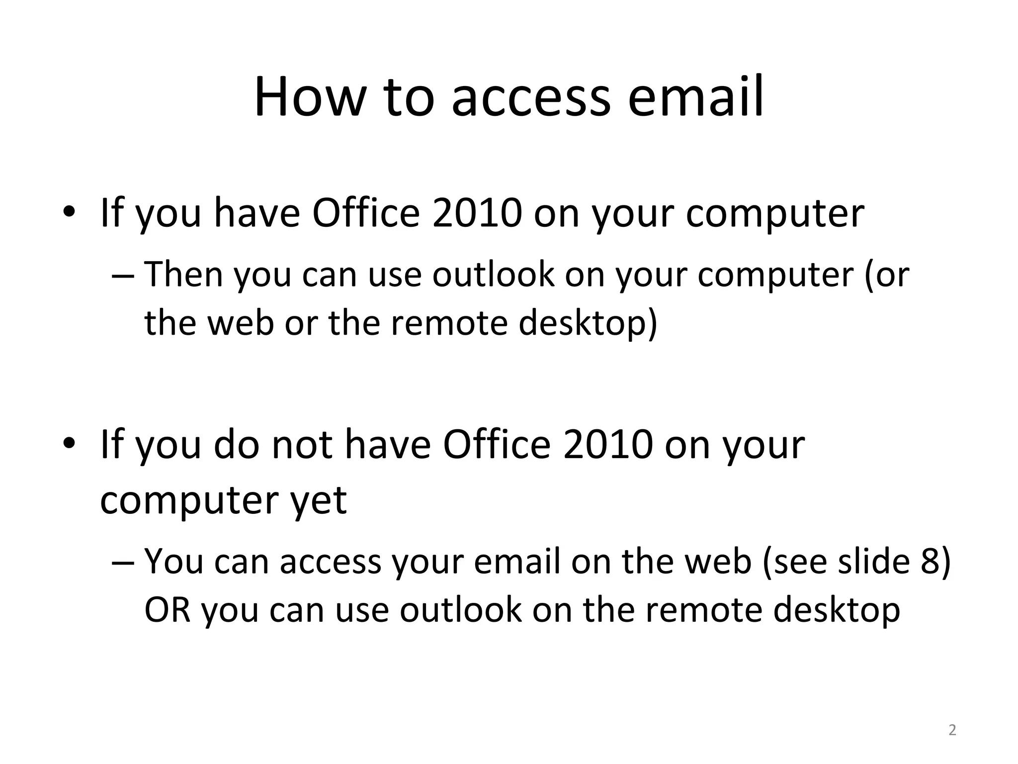 2. Through the web at https://webmail.pa.org/owa from any browser by entering username and Windows password.