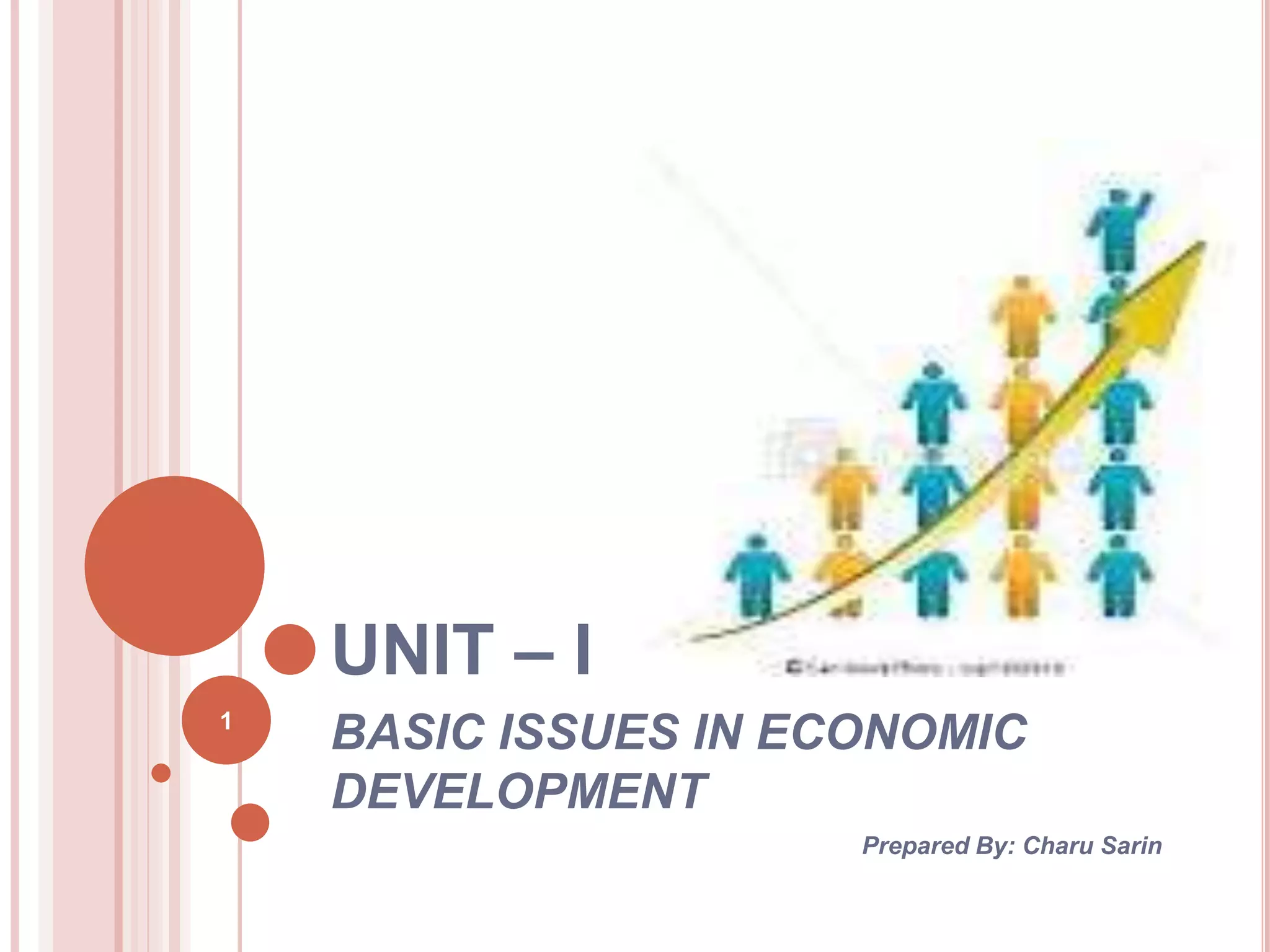 The document discusses concepts related to economic development. It begins with an introduction that contrasts developed and underdeveloped economies. Developed economies make up 16% of the world's population but 73% of income, while underdeveloped economies are 70% of population but 14% of income.