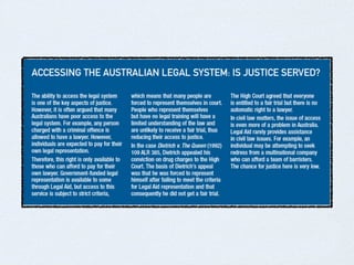 The document provides an overview of key concepts in the Australian legal system. It discusses: