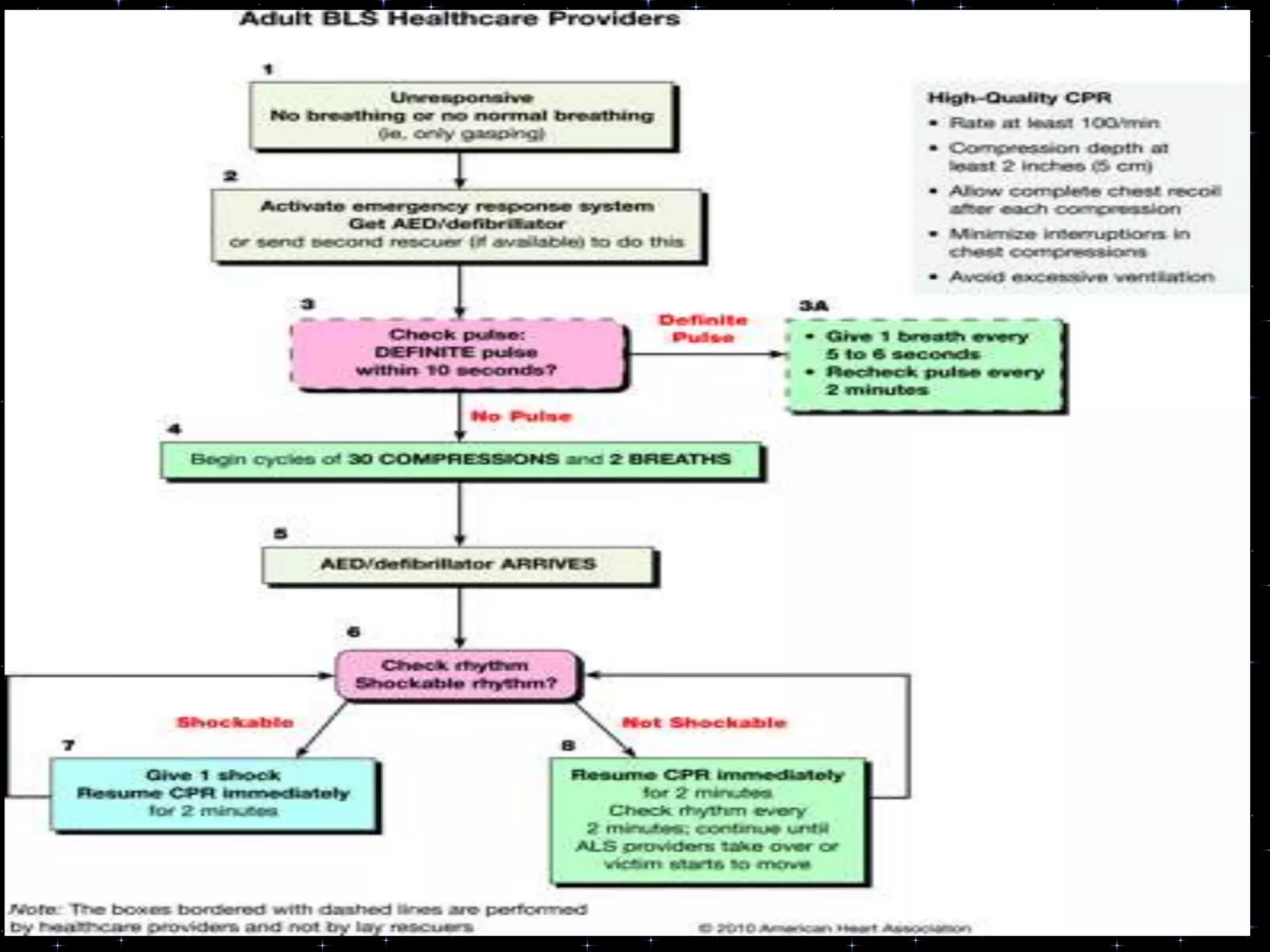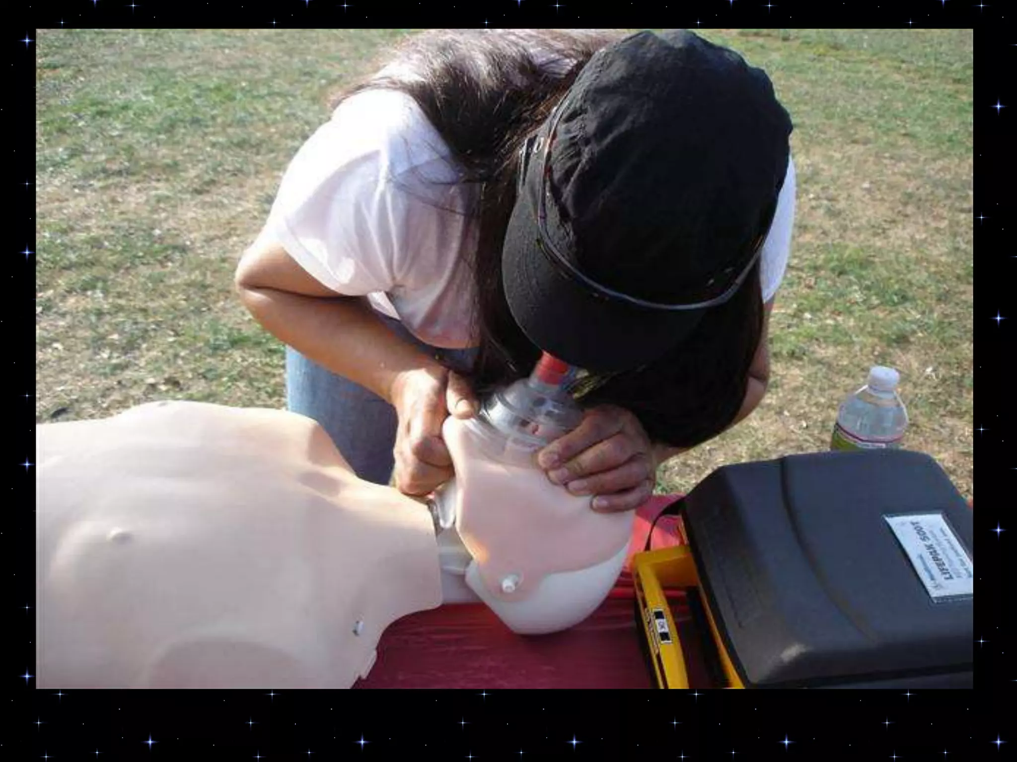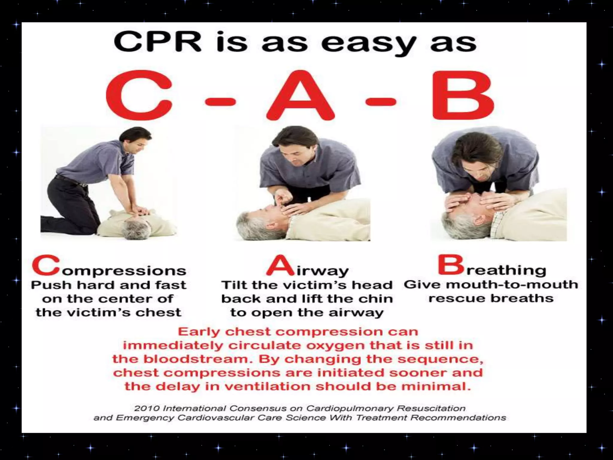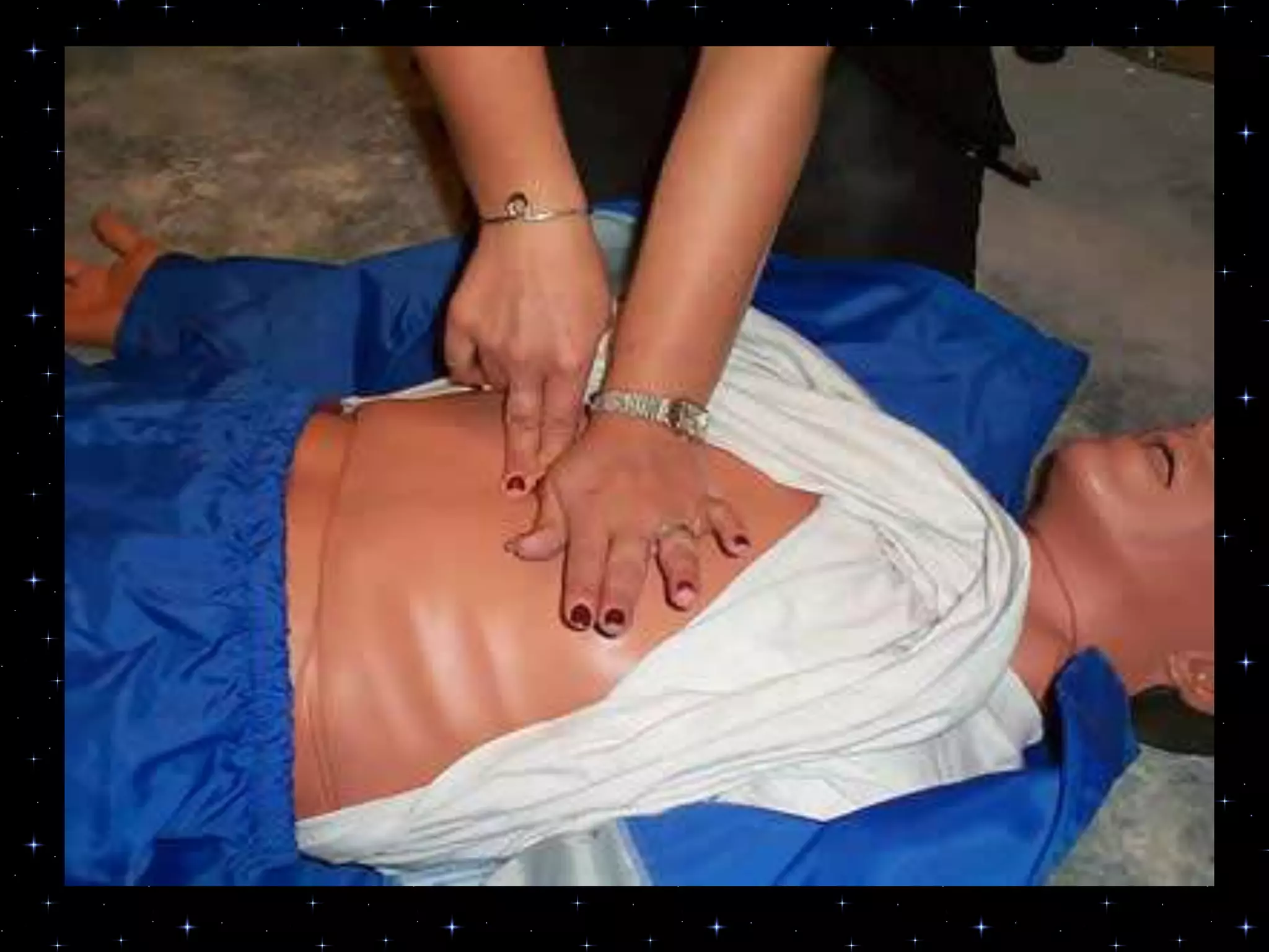 This document provides information on basic life support (BLS) procedures. It begins with an introduction to BLS, which includes immediate recognition of cardiac arrest, activation of emergency services, early CPR, and use of an automated external defibrillator. It then defines BLS and outlines the emergency action principle of assessing safety, doing a primary survey of the victim, activating EMS, and conducting a secondary assessment. The document provides detailed steps for conducting CPR, including chest compressions, opening the airway, giving rescue breaths, and using an AED. It also covers foreign body airway obstruction and procedures for infants.