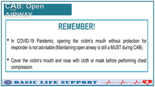 The document provides comprehensive guidelines on emergency care principles, including basic life support (BLS), cardiopulmonary resuscitation (CPR) methods, and emergency action principles. It outlines the steps for assessing and managing cardiac arrest situations, the use of automated external defibrillators (AEDs), and the importance of scene safety and proper logistics. Additionally, it highlights the American Heart Association's chain of survival and offers specific techniques for CPR on adults, children, and infants, along with relevant protocols for airway obstruction management.