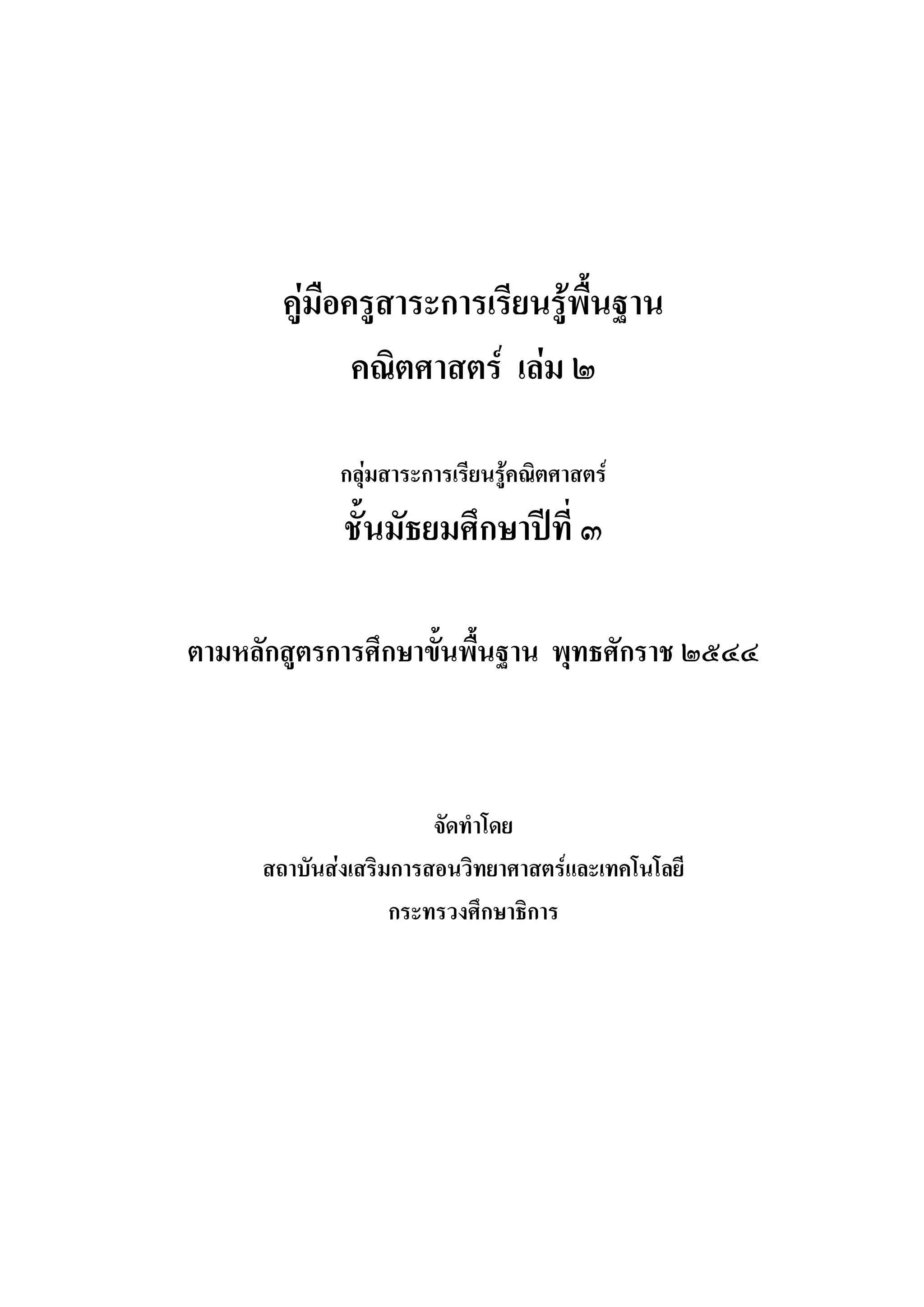 คูมือครูสาระการเรียนรูพื้นฐาน คณิตศาสตร เลม ๒ กลุมสาระการเรียนรูคณิตศาสตร ชั้นมัธยมศึกษาปที่