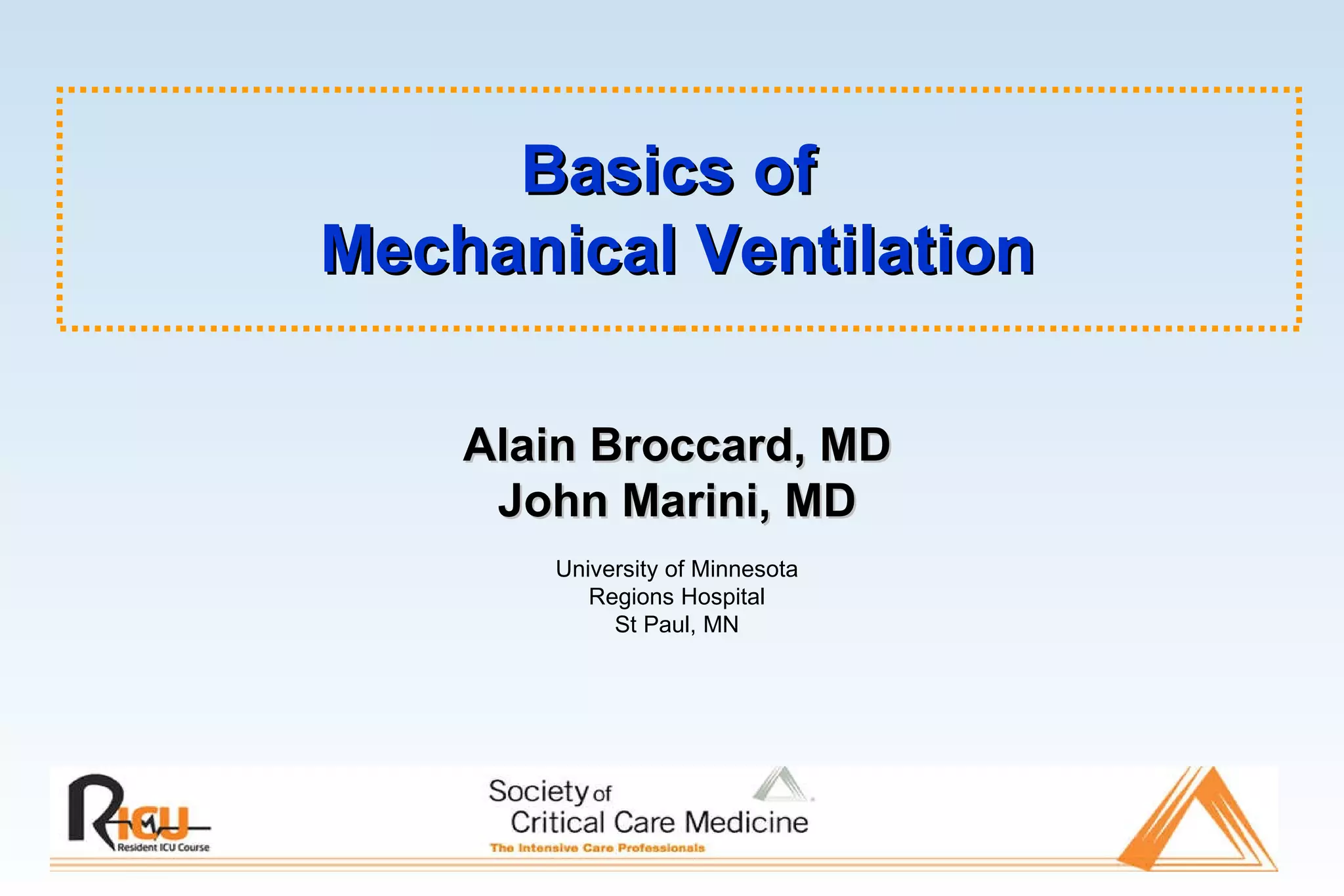 1) How mechanical ventilation helps reduce the work of breathing and restore gas exchange through invasive and noninvasive positive pressure ventilation.