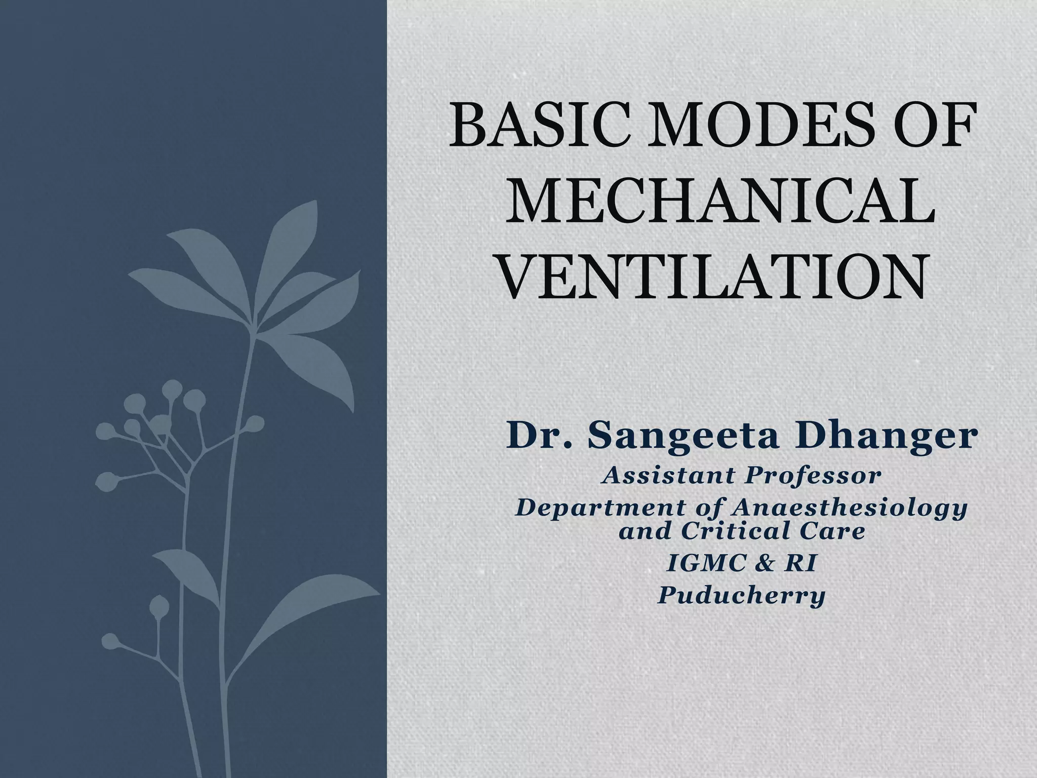 1. The document discusses various modes of mechanical ventilation including volume control, pressure control, SIMV, and PSV. It describes the settings, parameters, and considerations for each mode.