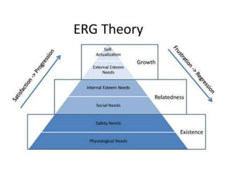 - Herzberg's two-factor theory which distinguishes between motivators like achievement that drive job satisfaction and hygiene factors whose absence can cause dissatisfaction.