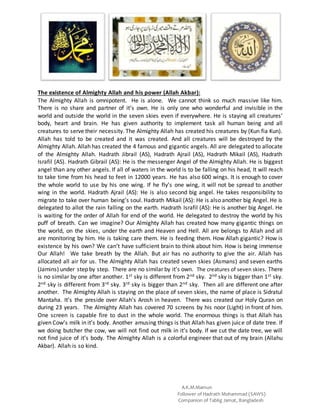 2. It discusses four major angels - Jibrail, Ajrail, Mikail, and Israfil - and their roles in delivering messages, taking souls, controlling rain, and ending the world.
