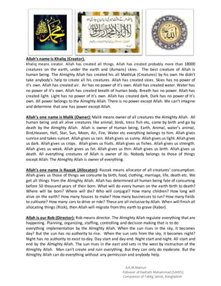 1. It describes Allah as the omnipotent creator of all things, including humans, angels, skies, earths, and all creatures.