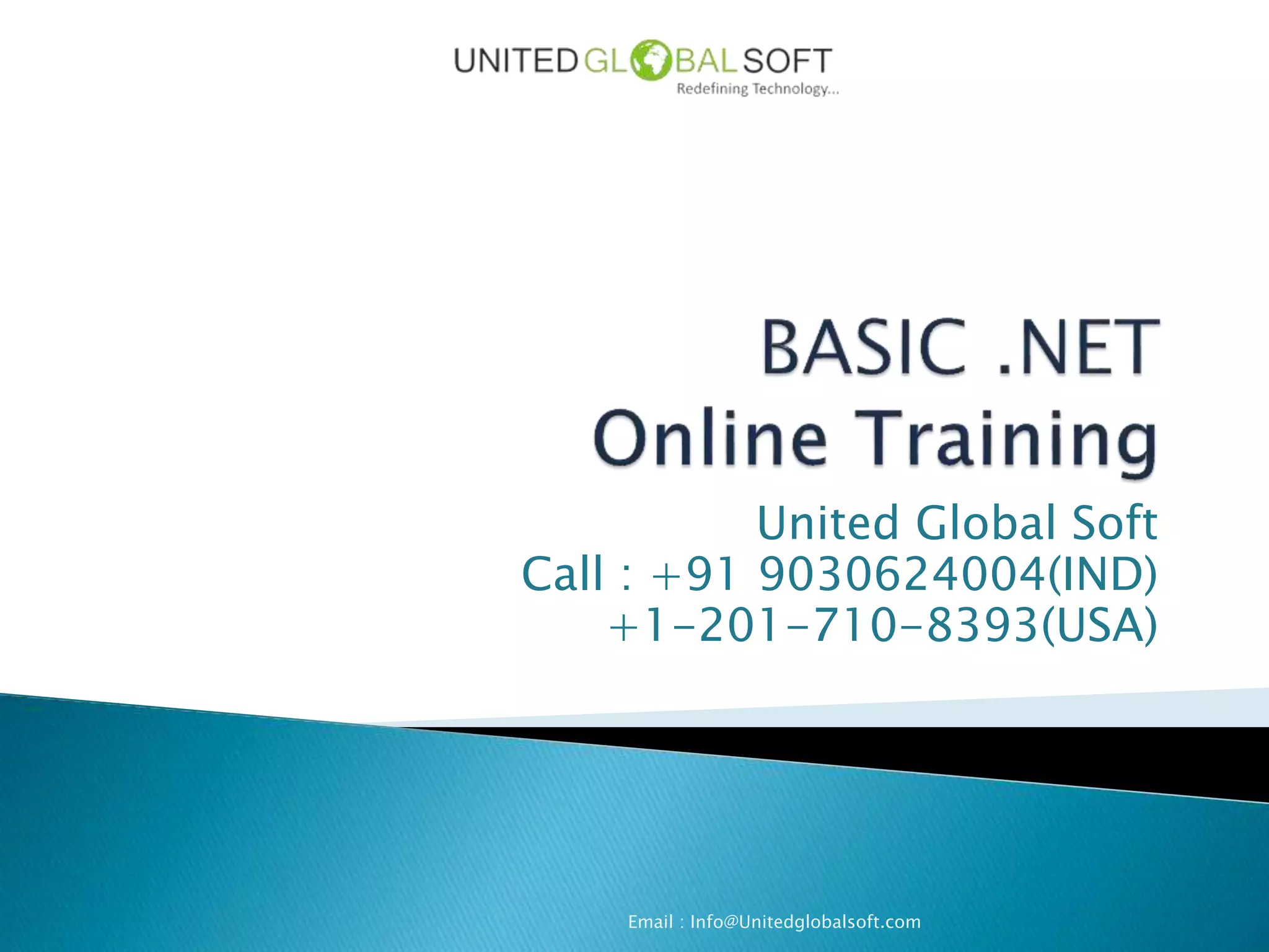 United Global Soft offers comprehensive .NET training through online and classroom formats, conducted by experienced IT professionals. The curriculum includes ASP.NET, C#.NET, data binding, error handling, and job placement assistance, ensuring practical and theoretical knowledge. The company guarantees 100% satisfaction and personalized support throughout the training and interview process.