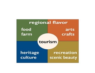 This document discusses networks and regional development. It describes how networks are sets of relationships that influence communication and collaboration. Smart networks have a core of connected clusters with different perspectives connected to a periphery that brings in new ideas. Case studies show how identifying regional assets like a unique fruit or food can spur tourism and local business if promoted as a regional brand through a collaborative network. Next steps involve exploring ideas in one's interest area and taking small actions like connecting with others to move ideas forward.