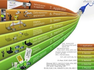 A network connects two or more computers together. Networks are classified based on their topology, protocols, and architecture. Common topologies include bus, ring, and star. Protocols like Ethernet and Token Ring define how computers communicate. Architectures are either peer-to-peer or client/server. Devices connect directly in peer-to-peer while clients rely on a central server in a client/server network.