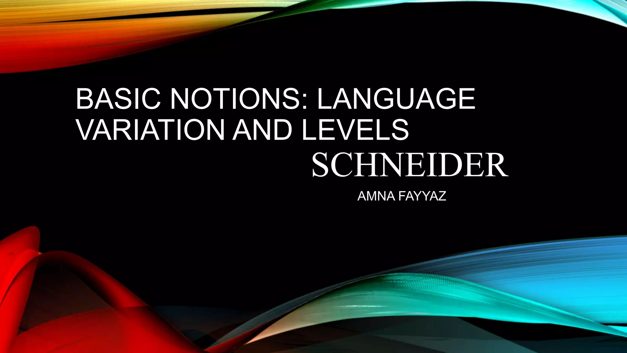 The document discusses language variation, highlighting how different linguistic forms, or 'varieties', emerge from sociolinguistic parameters such as region, gender, and age. It examines levels of language variation including pronunciation, grammar, and vocabulary, clarifying distinctions between terms like dialect, register, and accent. Ultimately, it emphasizes that no language form is inherently superior, with variations reflecting the diverse speech habits of different communities.