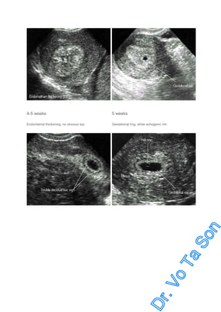 Ultrasound is a vital tool in obstetric practice for gestational age estimation, fetal growth monitoring, and anomaly screening, with routine screening performed at 18-20 weeks. Key indications include diagnosing pregnancy, assessing fetal development, and guiding invasive procedures, alongside evaluating complications like threatened abortion and ectopic pregnancy. The document outlines detailed fetal biometry parameters, ultrasound findings for various conditions, and the significance of amniotic fluid and placental assessments in managing pregnancy.