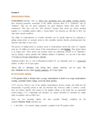 1. Semiconductors like silicon have electrical properties between conductors and insulators, with few free electrons. Doping semiconductors by adding impurity atoms can produce more free electrons or holes.