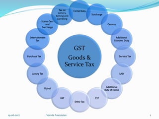 The document provides an extensive overview of the Goods and Services Tax (GST) framework in India, detailing definitions, taxable events, and compliance requirements. It explains key concepts such as registered persons, taxable persons, and the conditions for opting into the composition scheme. Additionally, it covers various tax types, their charging provisions, and the reverse charge mechanism for GST.