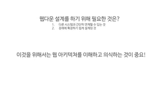 이것을 위해서는 웹 아키텍쳐를 이해하고 의식하는 것이 중요!