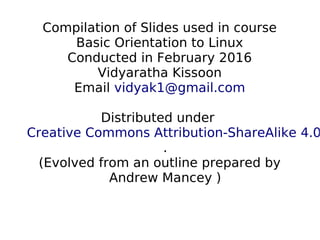The document provides a comprehensive orientation to Linux, covering free and open source software (FOSS), installation of Linux distributions, system management, and various software options. It details the structure of the Linux file system, file permissions, user management, software installation through package managers, and networking tools. The course aims to equip participants with the skills to navigate Linux effectively and understand the principles of FOSS.