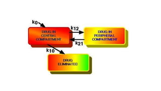 Dokumen ini membahas dasar-dasar farmakokinetik, pentingnya pengukuran konsentrasi obat dalam sampel biologis, serta metode-metode pengukuran dan sampling yang digunakan. Juga dijelaskan mengenai model-model kompartemen, parameter-parameter penting dalam farmakokinetik seperti volume distribusi, waktu paruh, dan luas area di bawah kurva (AUC). Selain itu, menyajikan contoh analisis farmakokinetik menggunakan data yang diambil dari percobaan dengan tikus dan sukarelawan.