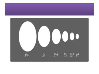 This document provides an introduction to basic photography concepts. It outlines three main objectives: to understand the three basic elements of photography (aperture, shutter speed, and ISO), learn some small photography techniques, and identify some local photographers and their styles. It then provides detailed explanations of each of the three elements - aperture, shutter speed, and ISO - and how they work together to determine proper exposure in a photograph. It also briefly discusses restoration of old photographs and uses of Adobe Photoshop. Finally, it lists and provides examples of several famous local photographers and one of their notable photographs.