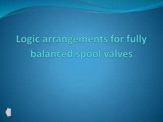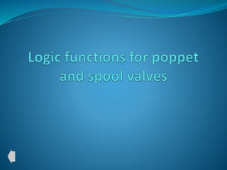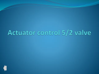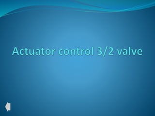 - Examples of using 2/2 and 3/2 valves to control single-acting cylinders, and 5/2 valves to control double-acting cylinders. Speed control methods like flow regulators are discussed.