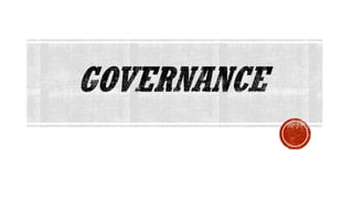 The document discusses key concepts in politics and governance in the Philippines. It defines politics, governance, and basic political concepts such as order, power, and justice. It then examines two approaches to studying politics - political philosophy and political science. The document also outlines important processes and actors in governance, including decision-making, implementation, and both formal and informal actors. Finally, it analyzes eight indicators of good governance in the Philippines: participation, rule of law, effectiveness and efficiency, transparency, responsiveness, equity and inclusiveness, consensus orientation, and accountability.