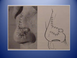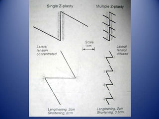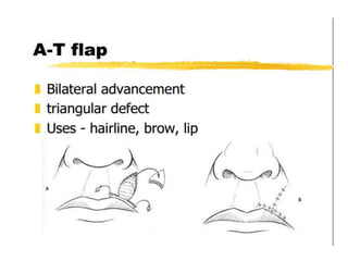 1) The document discusses principles of local flaps in plastic surgery, including definitions, classifications, and history. Local flaps are classified based on location, blood supply, movement, and tissue composition.