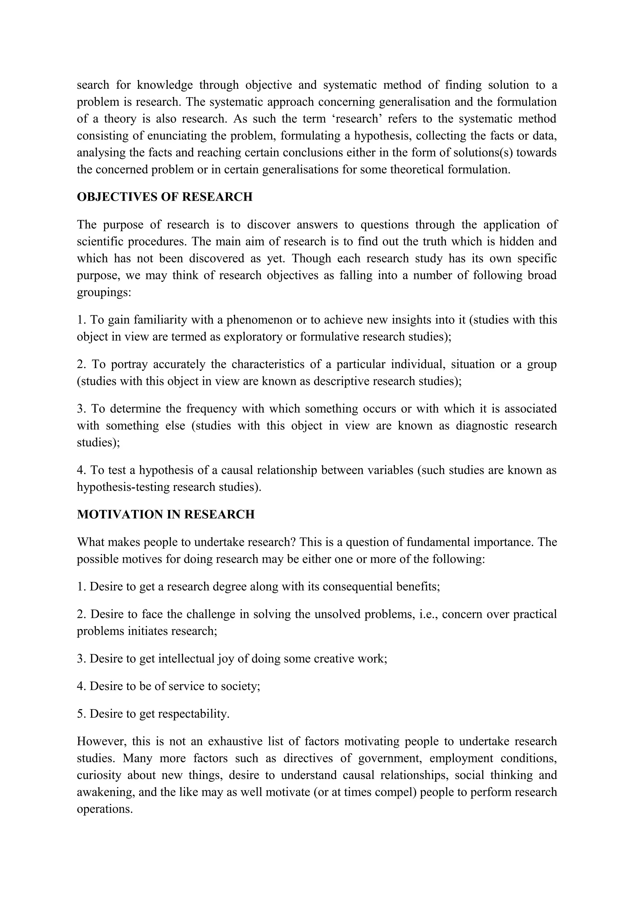 This document provides an overview of research methodology. It discusses key concepts such as the meaning of research, objectives of research, types of research including descriptive vs analytical and quantitative vs qualitative, and significance of research. The main types of research covered are descriptive research which aims to describe the current state, analytical research which evaluates facts to make a critical assessment, applied research which aims to solve practical problems, and fundamental research which adds to the body of scientific knowledge. Quantitative research is based on measurement while qualitative research investigates underlying reasons for behaviors.