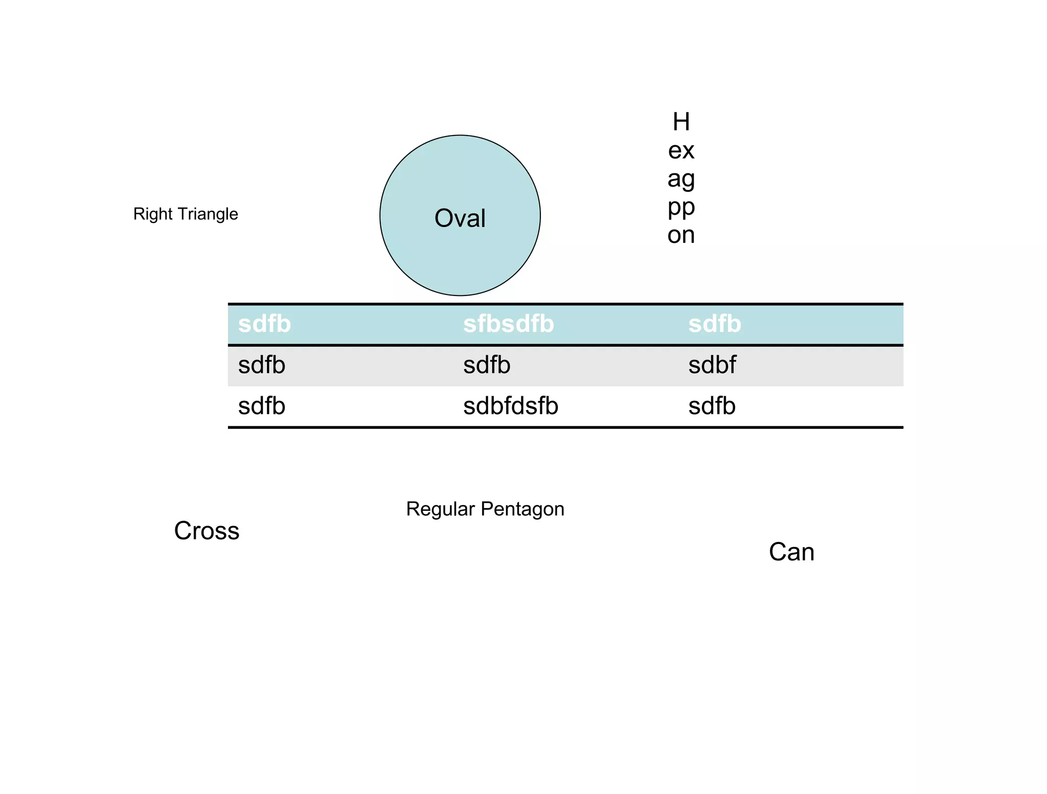 The document contains various geometric shapes and symbols without any context or explanation. There are basic shapes like triangles, circles, squares and pentagons as well as more complex shapes like crosses, cubes, and plaques. Symbols include numbers, currency signs and punctuation marks.