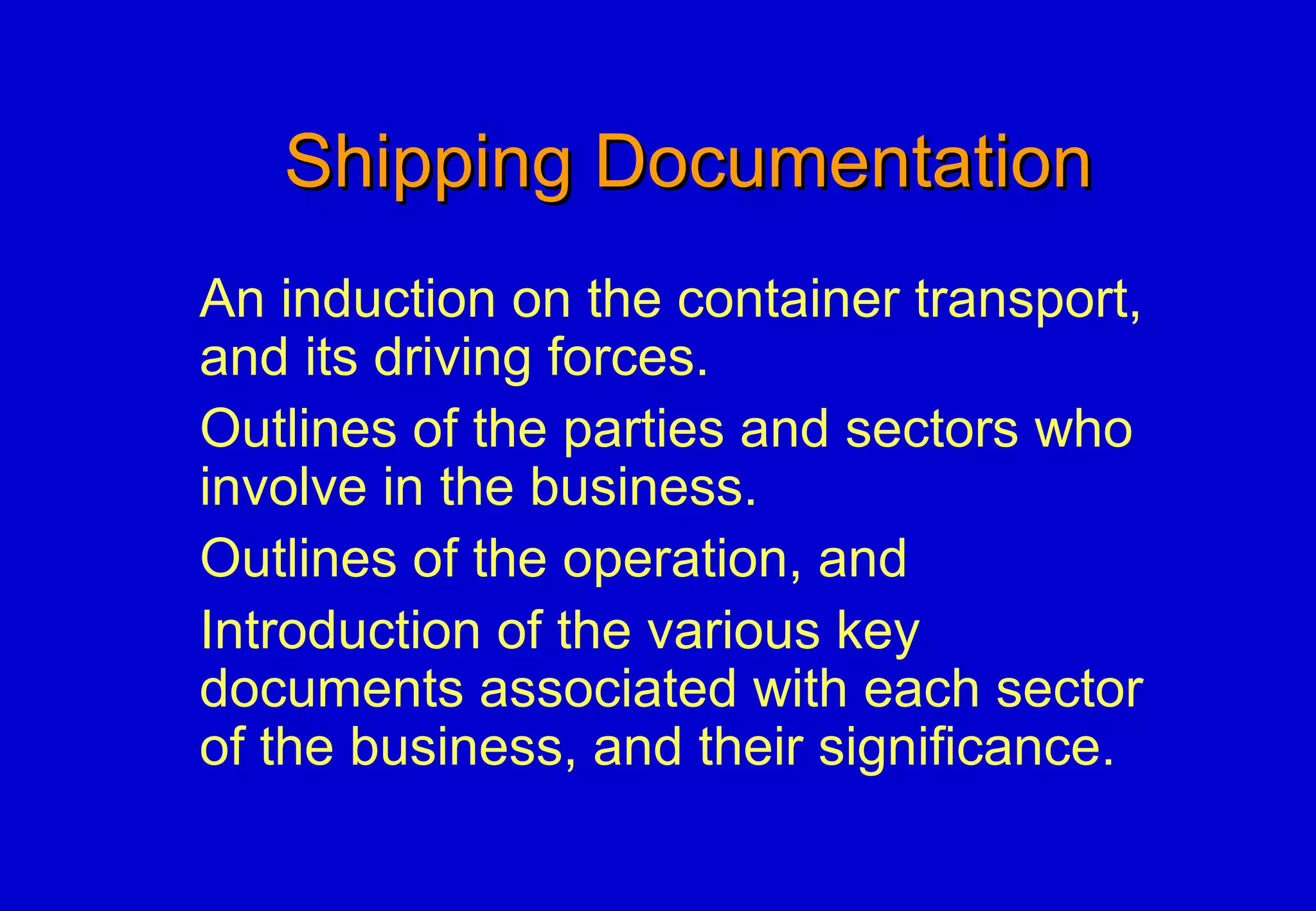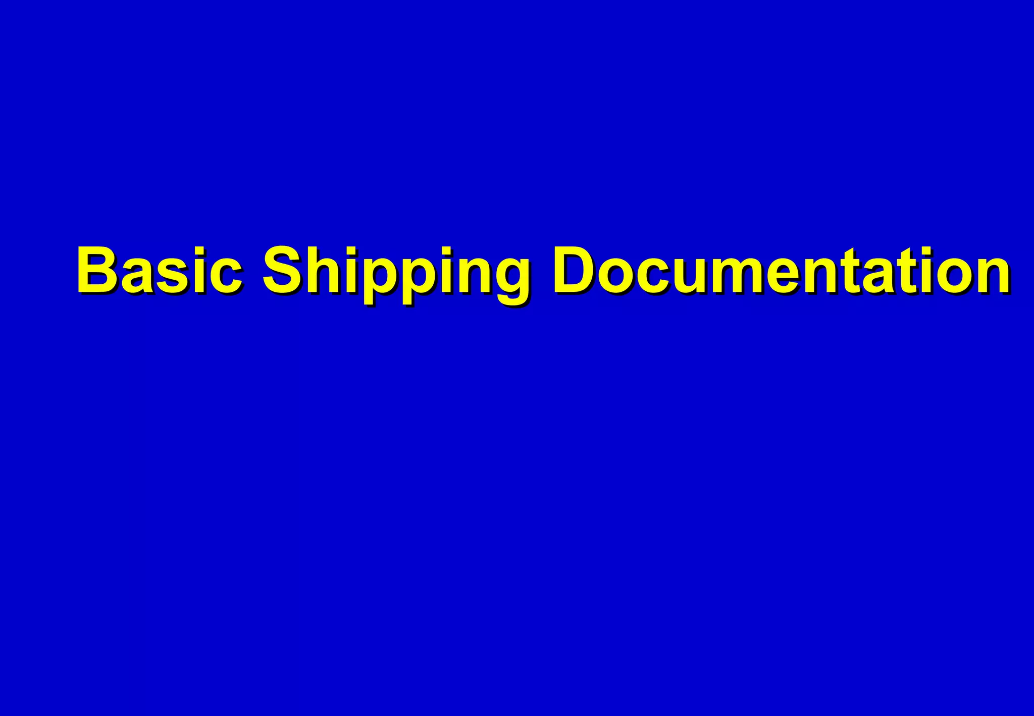 The document provides an overview of basic shipping documentation, including the significance of key documents such as the bill of lading and incoterms in the shipping business cycle. It outlines the operations, responsibilities, and various participants involved in the shipping process, as well as the implications of using incoterms for international transactions. Additionally, it emphasizes the importance of documentation in facilitating the shipment cycle and the procedures for handling various shipping documents.