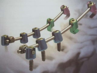The document outlines the basic and optional instruments used for spinal operations, specifically detailing various types of retractors, elevators, and tools for specific spinal levels. It emphasizes the preparation and selection of instruments based on the surgical approach, spinal instrumentation, and the surgeon's preference. Additionally, it discusses the tools required for screw, hook, and wire insertion, particularly for cervical instrumentation systems.