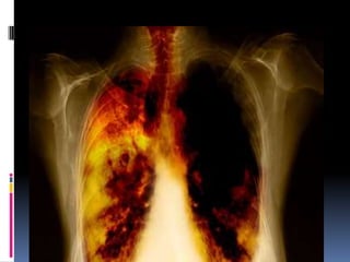 The document summarizes the harmful substances found in cigarettes and their effects on the lungs. It lists the main substances in cigarettes as nicotine, tar, and carbon monoxide. It then describes several other toxic and carcinogenic elements and chemicals found in tobacco and cigarette smoke, including benzopyrene, methanol, acetic acid, cadmium, formaldehyde, arsenic, ammonia, butane, nitrogen dioxide, endrin, and hydrogen cyanide. All of these substances can damage and destroy lung tissue over time.