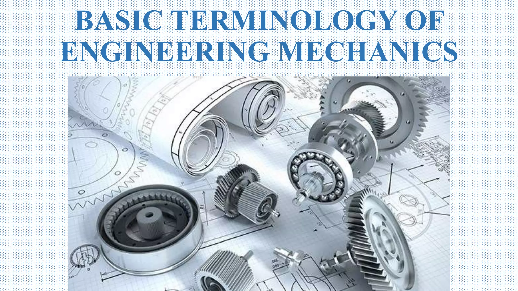 Engineering mechanics is a branch of applied science that deals with the laws and principles of mechanics and their application to engineering problems. It is concerned with the motion and rest of bodies under the action of forces. Some key terms in engineering mechanics include mass, time, space, length, displacement, velocity, acceleration, momentum, force, stress, and strain. Mass is a measure of the amount of matter in a body, while time is a measure of successive events like the Earth's rotation. Space and length help define the region and dimensions over which a body exists.