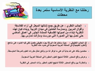 تناقش الوثيقة الجوانب النظرية والتطبيقية للمناهج الخاصة بالعلوم في المملكة العربية السعودية، حيث تقدم تحليلاً للمناهج المستندة إلى الفلسفات التربوية المختلفة وأسسها. تتناول الوثيقة أيضًا القدرة على تطوير المناهج وفقًا للاحتياجات المجتمعية وتقديم معلومات تفيد في تكوين مواطنين صالحين قادرين على الإسهام في المجتمع. يأتي ذلك في سياق تقديم تعريفات شاملة حول مفهوم المنهج الدراسي ودوره في التعليم.