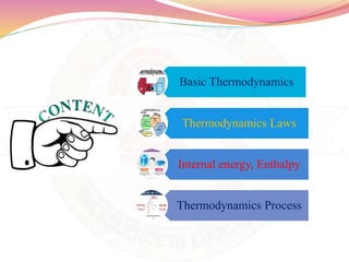 The document is a comprehensive overview of basic thermodynamics, covering its definitions, laws, types of systems, properties, and processes. It explains concepts such as internal energy, enthalpy, and various thermodynamic processes including isothermal and adiabatic changes. Additionally, it discusses the laws of thermodynamics, including the Zeroth, First, Second, and Third Laws, detailing their implications and applications.