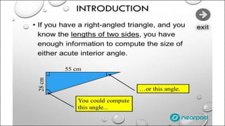 Trigonometry is an area of mathematics that studies relationships involving lengths and angles of triangles. It introduces functions of angles called trigonometric functions and is applicable to many areas involving periodic phenomena, such as astronomy and engineering. This document provided a brief introduction to trigonometry and wished readers a happy adventure exploring this area of math.