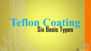 The document outlines six basic types of Teflon coatings, including PTFE, FEP, PFA, ETFE, Teflon®-S one coat, and Teflon®-S dry lubricant coatings, each featuring unique properties like high operating temperatures and excellent chemical resistance. Prabhat Udyog specializes in industrial-grade Teflon coatings with over 30 years of experience, aiming to provide non-stick and anti-corrosion solutions. The coatings are available in various forms, including water-based liquids and powders.