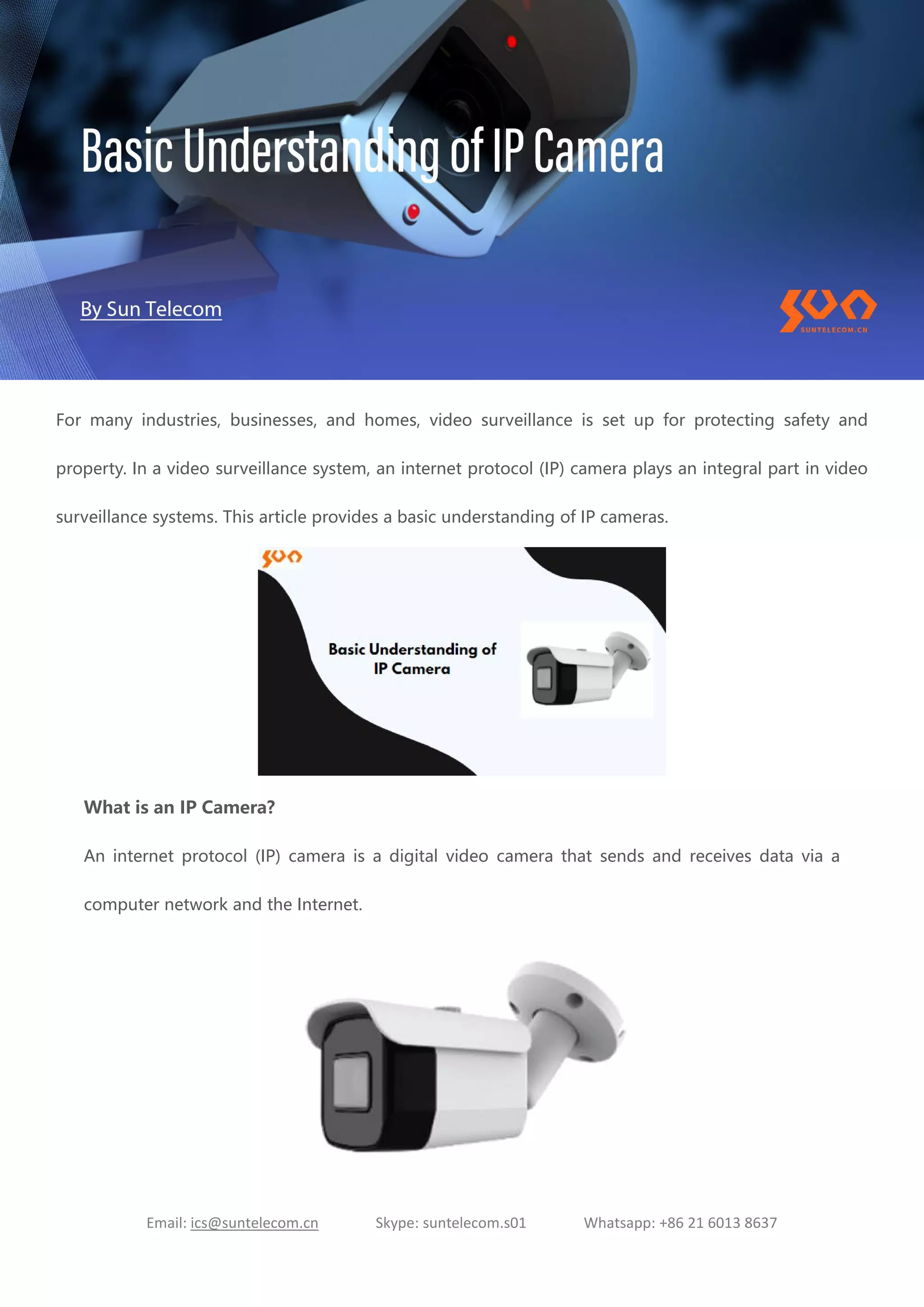 This document explains the role of IP cameras in video surveillance systems, describing how they capture and transmit data over networks. It details the types, features, and benefits of IP cameras, emphasizing their applications in various settings such as homes and businesses. IP cameras are highlighted as essential tools for security and surveillance, with capabilities for remote monitoring.