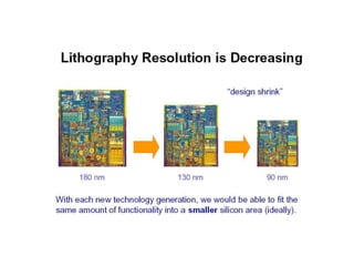This document provides an overview of VLSI (Very Large Scale Integration) and its applications. It discusses the history of integrated circuits from their inception in the late 1940s to today's advanced nanoscale technologies. Key topics covered include Moore's law of transistor scaling, digital circuit design challenges, CMOS fabrication processes, and examples of how VLSI is used in various electronic systems and devices.