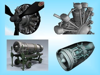 This document outlines the key components and structures of aircraft, including: the fuselage, wings, empennage (tail), power plant, and landing gear. It describes the main functions and typical designs of each component. For the fuselage and wings, it discusses different structural designs like truss, monocoque, and semi-monocoque configurations. It also defines common terms used for aircraft structural members.