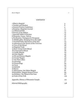 This document provides an overview of basic magick. It defines magick as the art, science, and craft of changing consciousness and the world through spiritual force. The document outlines different levels of initiation in magick, from student to adept to master. It also discusses the importance of teachers in magick, noting that while external teachers are not required, they can be very helpful for learning things not easily gained from books alone. A good student approaches the teacher with an open mind, and a teacher's role is to guide students according to their individual needs and stages of development.